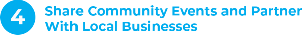 Sharing helpful content could be as simple as re-posting farmer’s market hours, sharing restaurant specials, or providing tips and tricks for navigating the local flea market. Searching Facebook events for local on-goings is another great and easy way to find shareable content your residents will find useful.