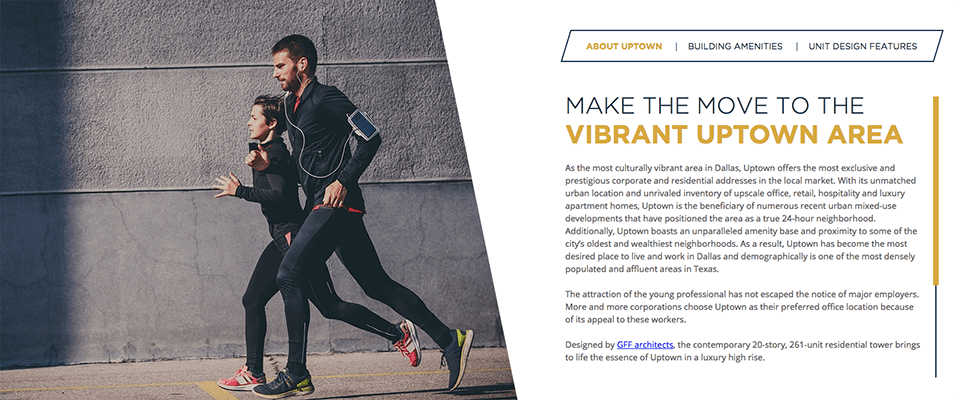 Trammell Crow approached Criterion.B to help drive awareness for a new under-construction development in Uptown Dallas, the M-Line Tower. In addition to developing a website for the tower, the team also wanted to gather a subscriber list based on people interested in pre-lease information.